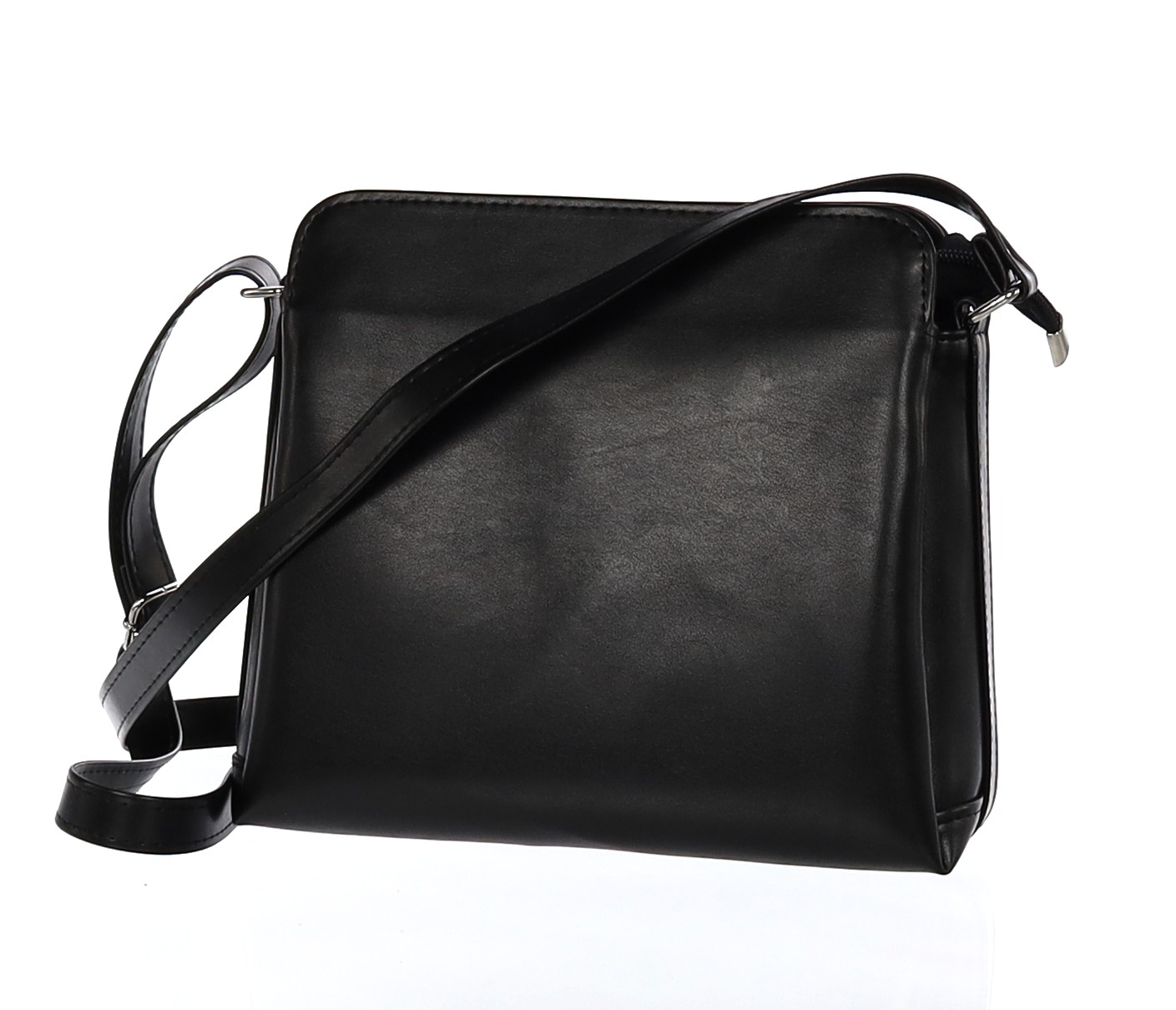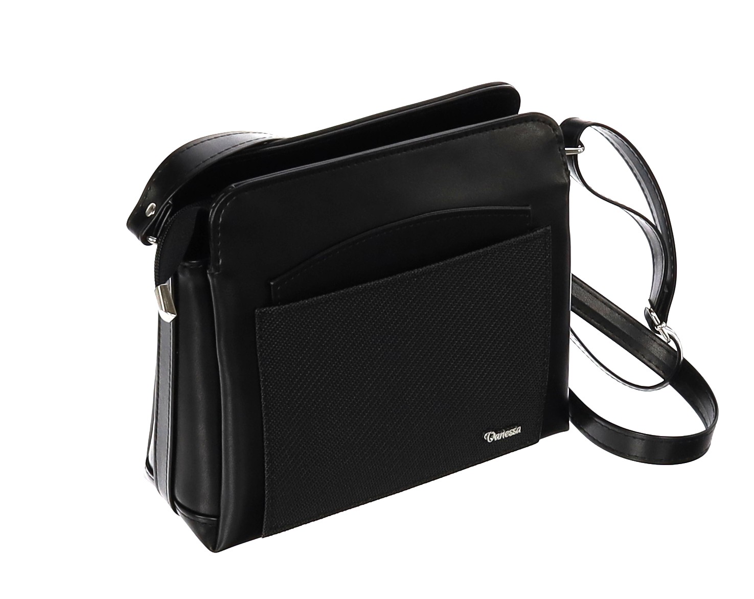 Torebka listonoszka na długim, regulowanym pasku, wymiary:szer.25cm;wys.22,5cm; szer.dna9cm; w środku trzy komory, dwie kieszonki w podszewce i jedna na przodzie torebki