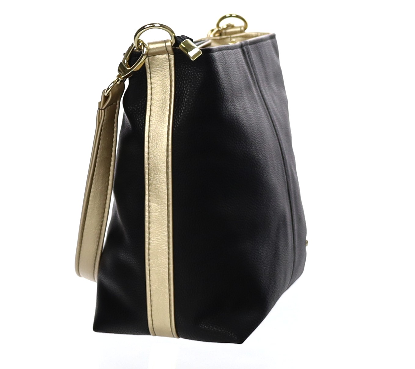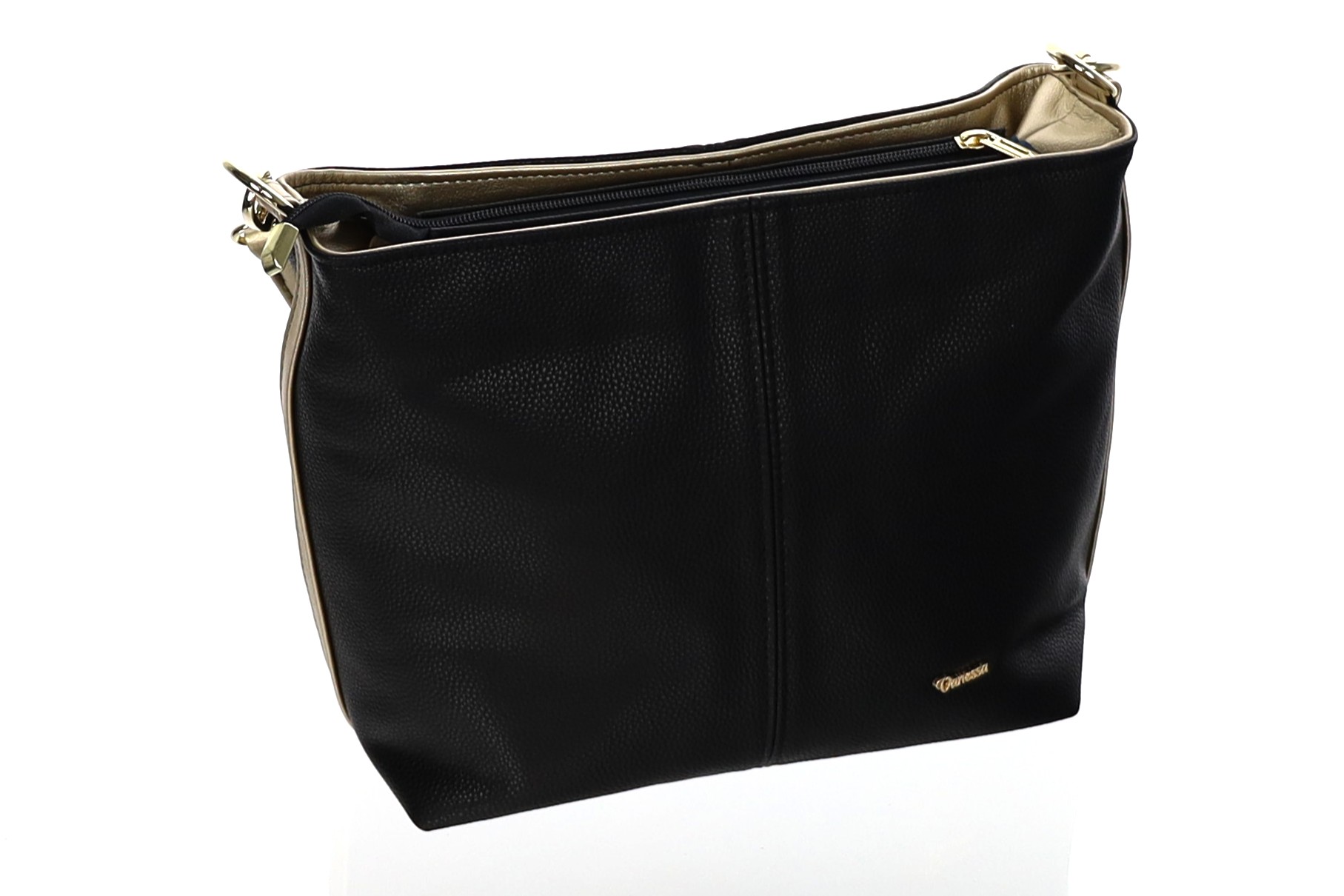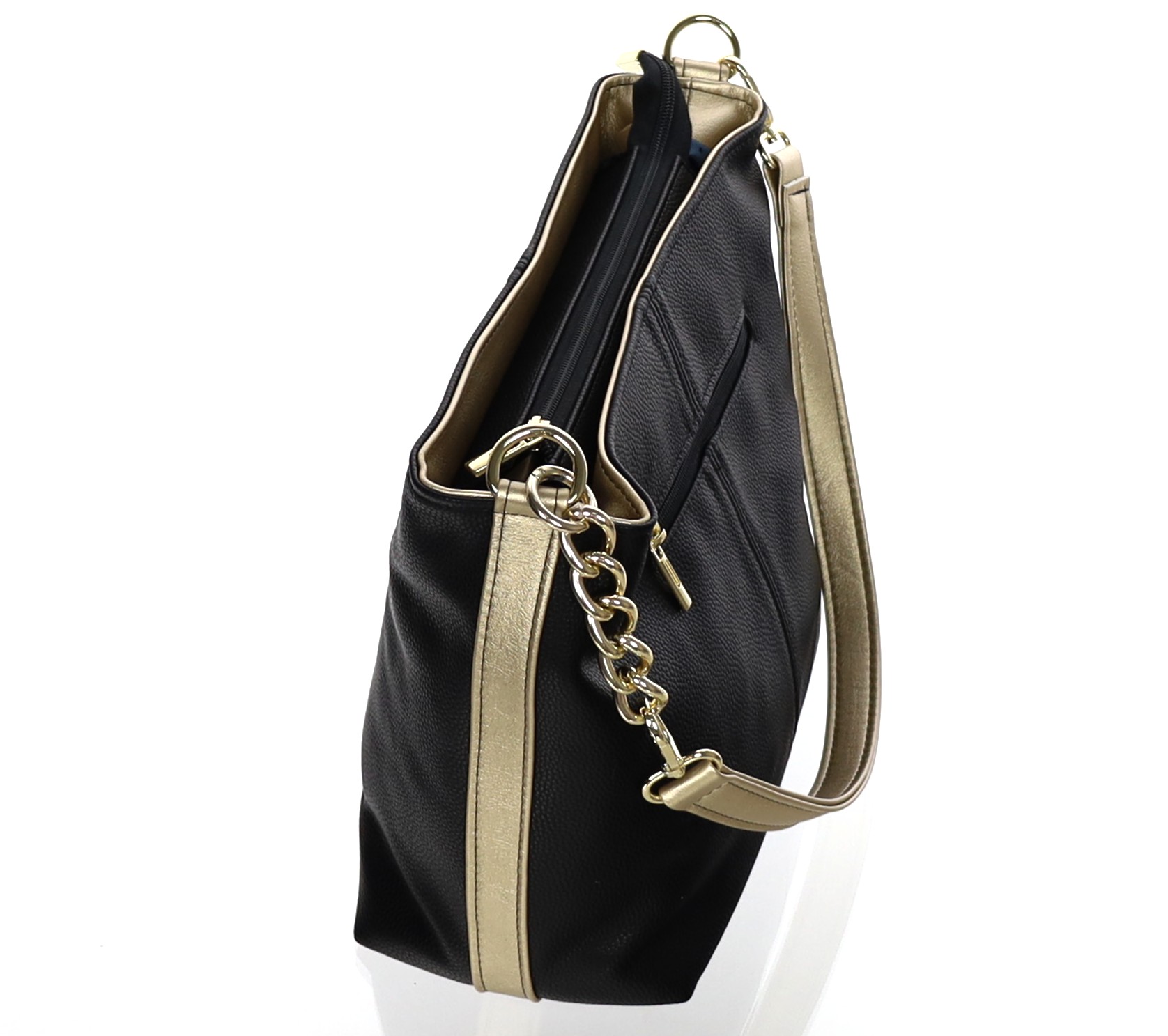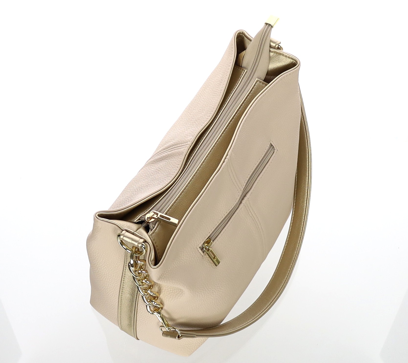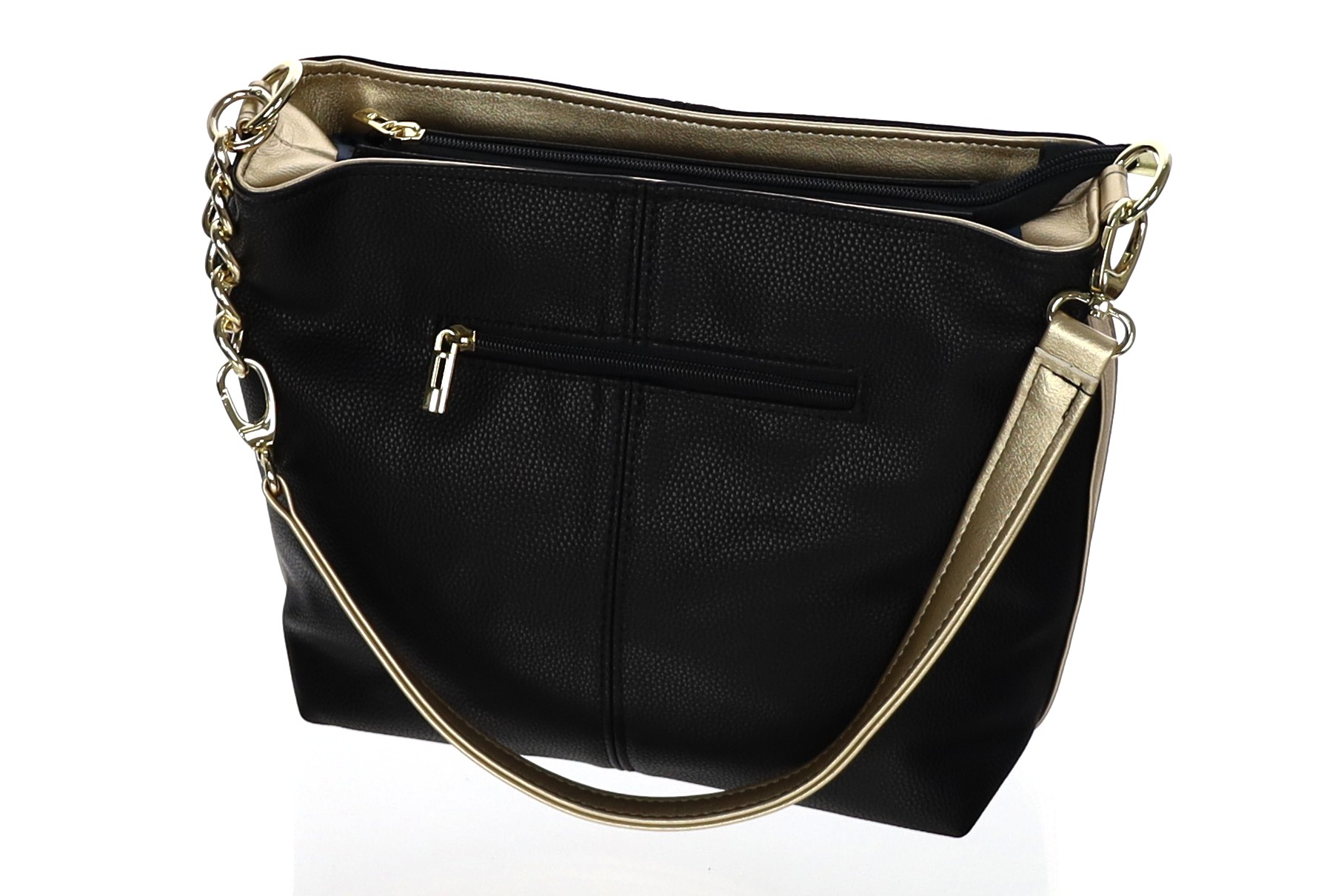 Średniej wielkości torebka na co dzień ale dzięki ozdobnej rączce świetnie sprawdzi się w eleganckiej stylizacji, dwukomorowa, w środku dodatkowe trzy kieszonki, dodatkowo kieszonka z tylu torebki, wymiary:szer.30cm; wys.25cm; szer. dna 14cm